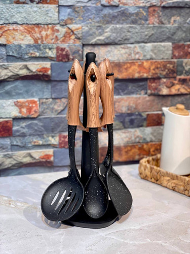 ست کفگیر و ملاقه طرح چوب هفت پارچه مدل woody محصول Perotti ترکیه