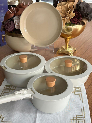 سرویس قابلمه 8 پارچه بدون روغن رنگ کرم Pro Chef cooker محصول arow ترکیه