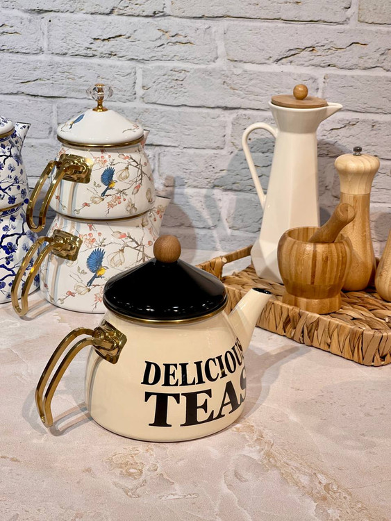 کتری قوری لعابی دو درب ترک پوشش گرانیتی