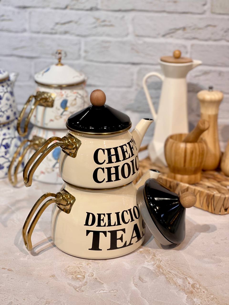 کتری قوری لعابی دو درب ترک پوشش گرانیتی