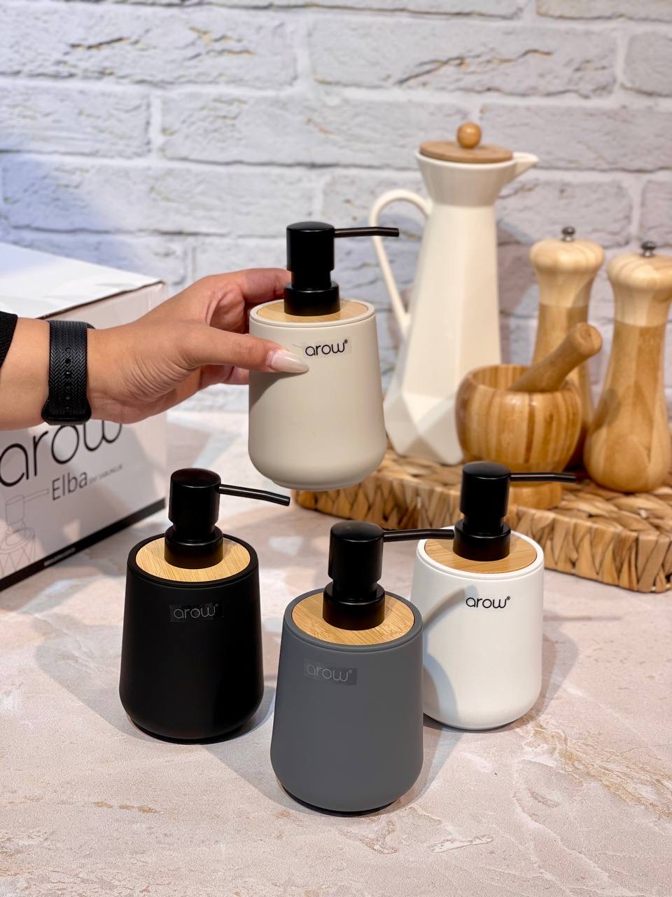 جا مایع پمپی Loris محصول arow ترکیه🇹🇷🇹🇷🇹🇷 جنس:اکرولیک با رویه بامبو کاملا ضد آب✅️ مقاوم در برابر ضربه در چهار رنگ مشکی،طوسی،سفید و کرم