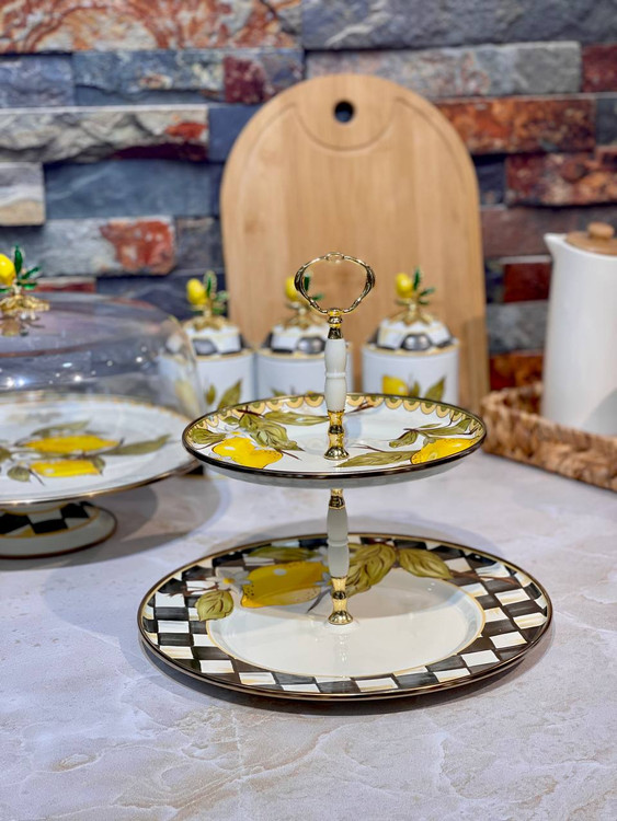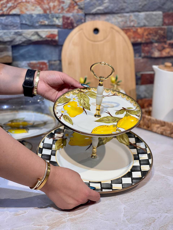 شیرینی خوری دو طبقه لعابی طرح لیمو linda برند miss betty ترکیه