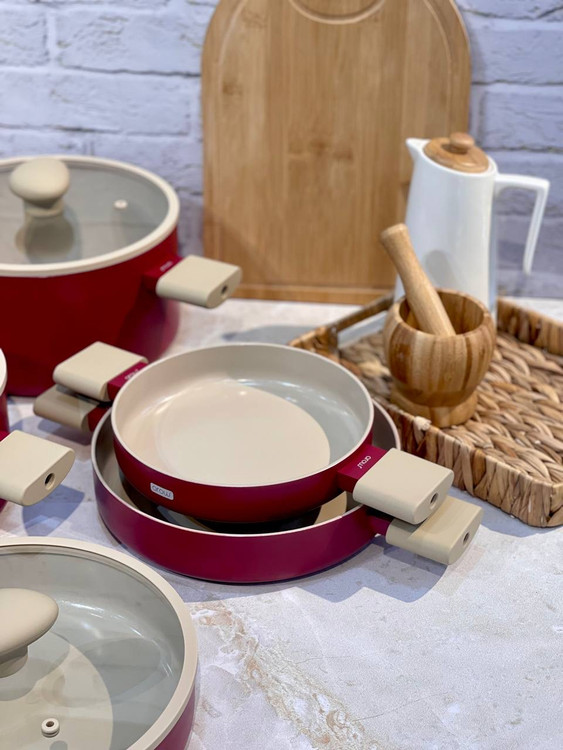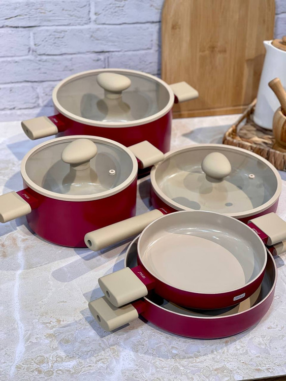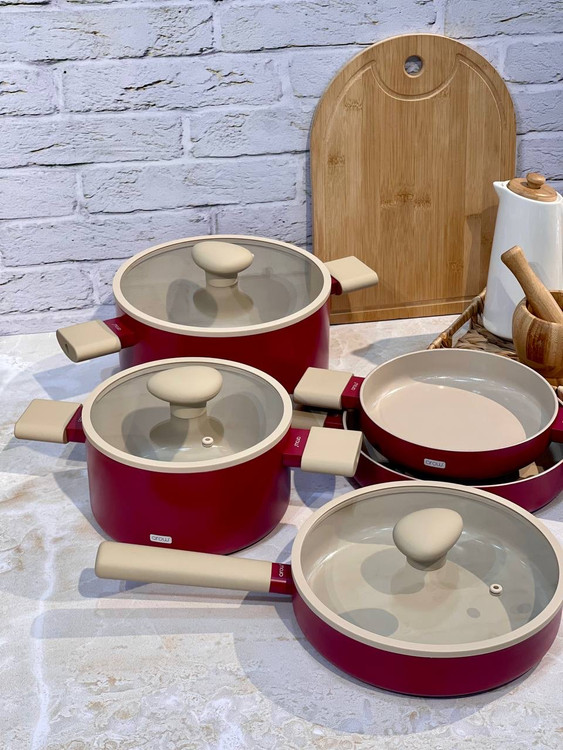 سرویس قابلمه 8 پارچه بدون روغن رنگ قرمز Pro Chef cooker محصول arow ترکیه