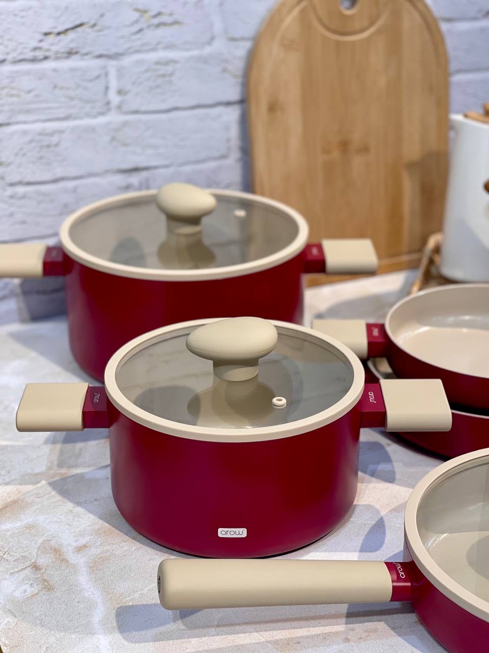 سرویس قابلمه 8 پارچه بدون روغن رنگ قرمز Pro Chef cooker محصول arow ترکیه