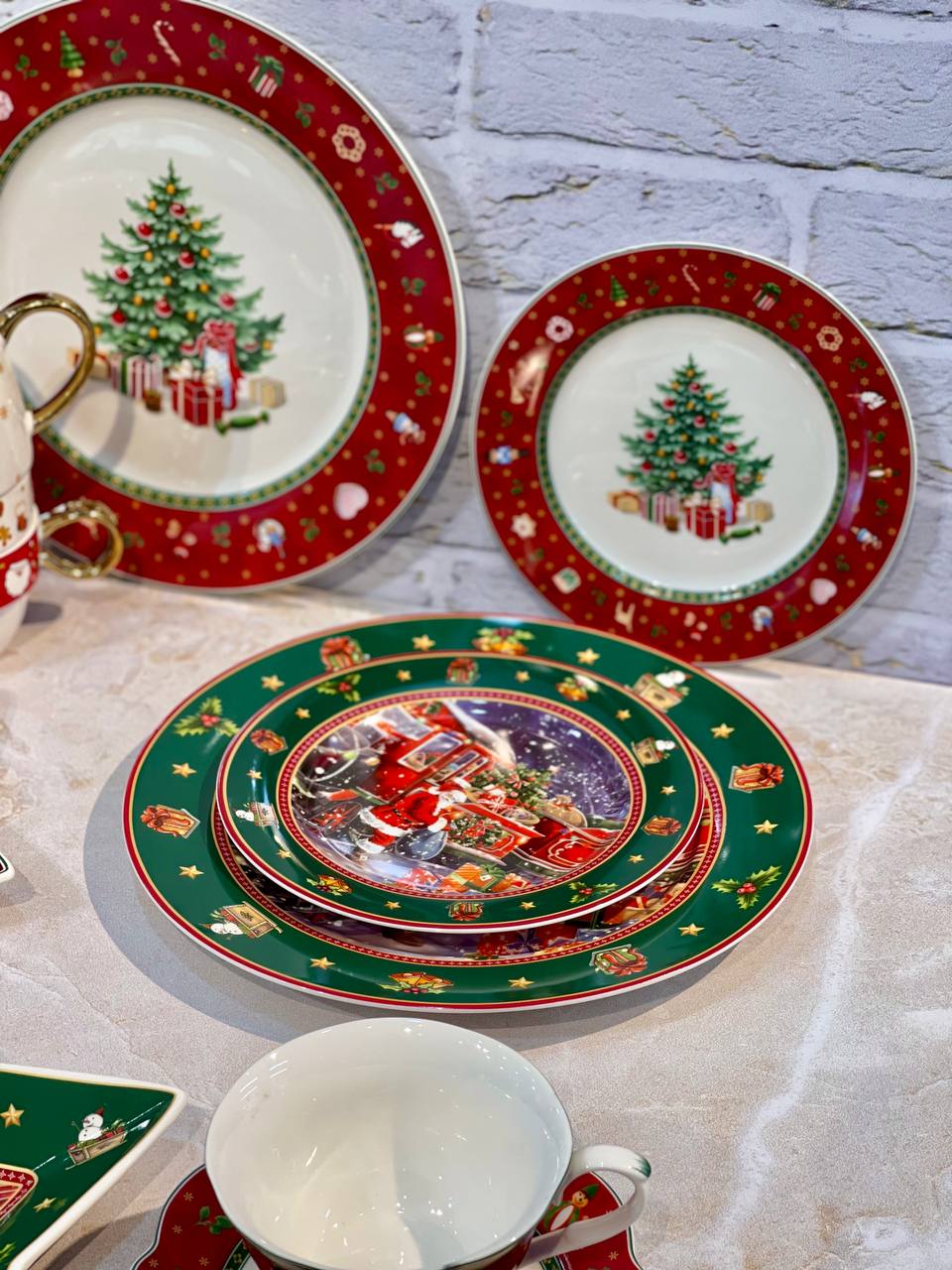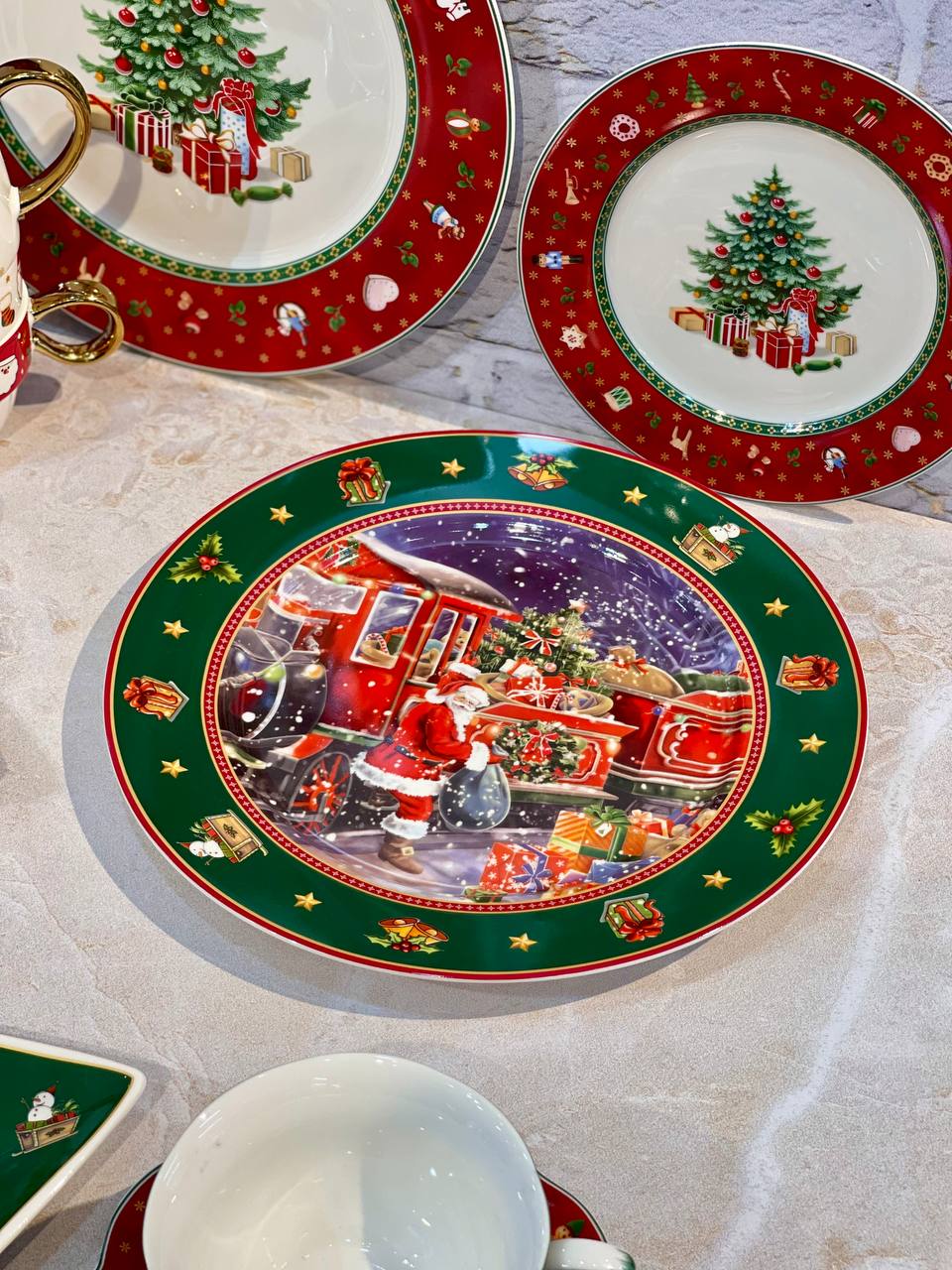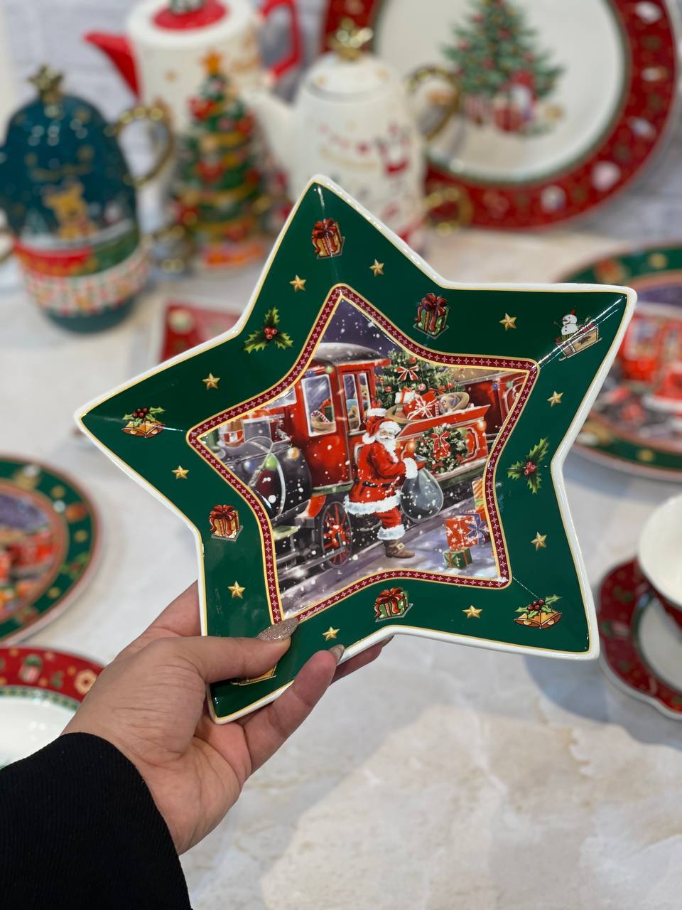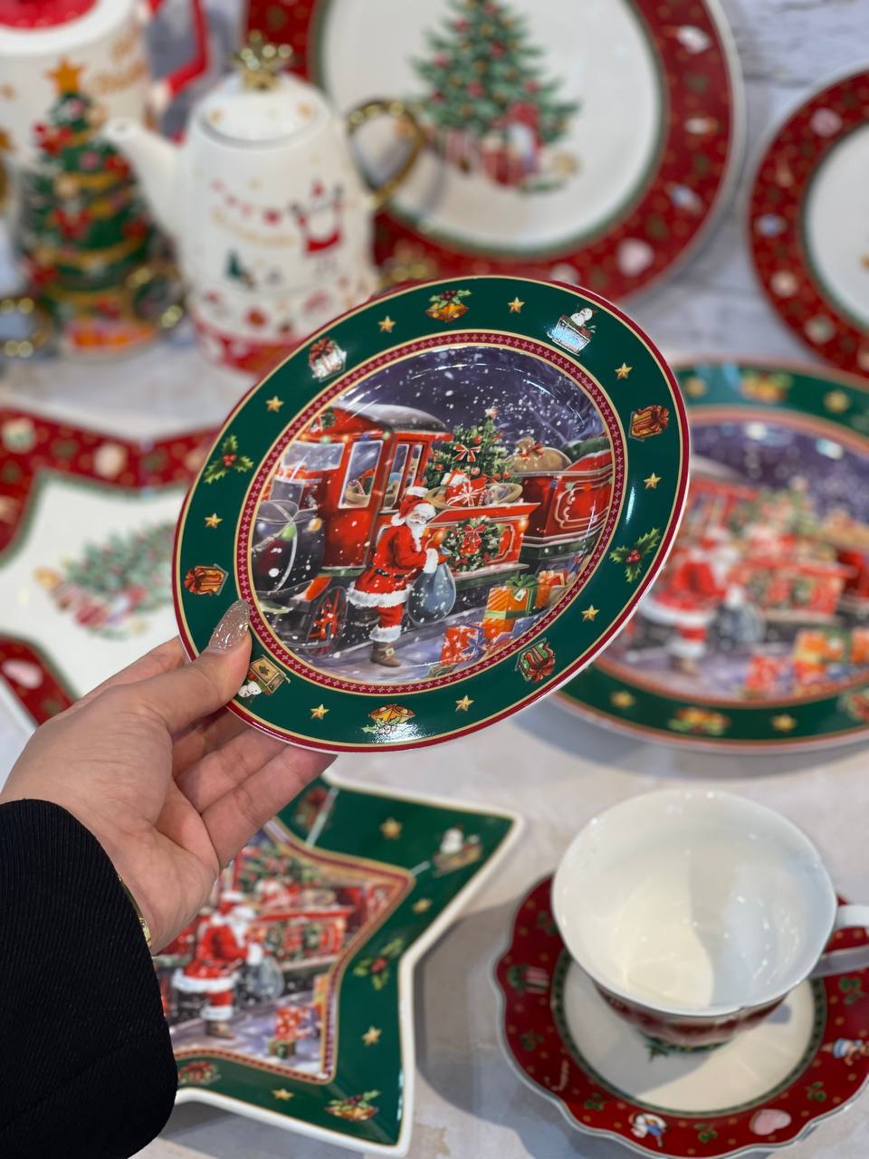 پلو خوری،پیش دستی و بشقاب کاج در دو طرح بابانوئل و کاج✅️