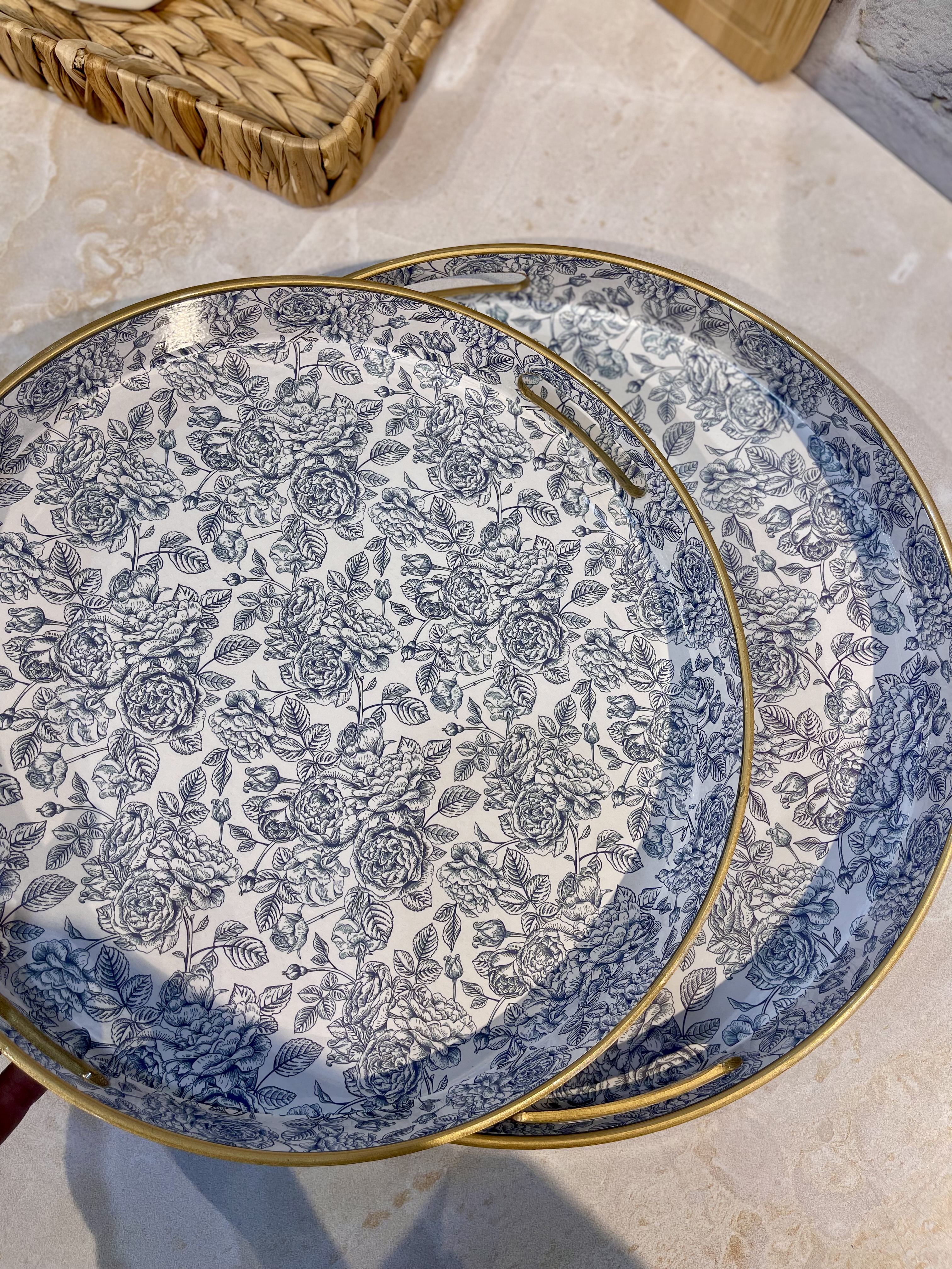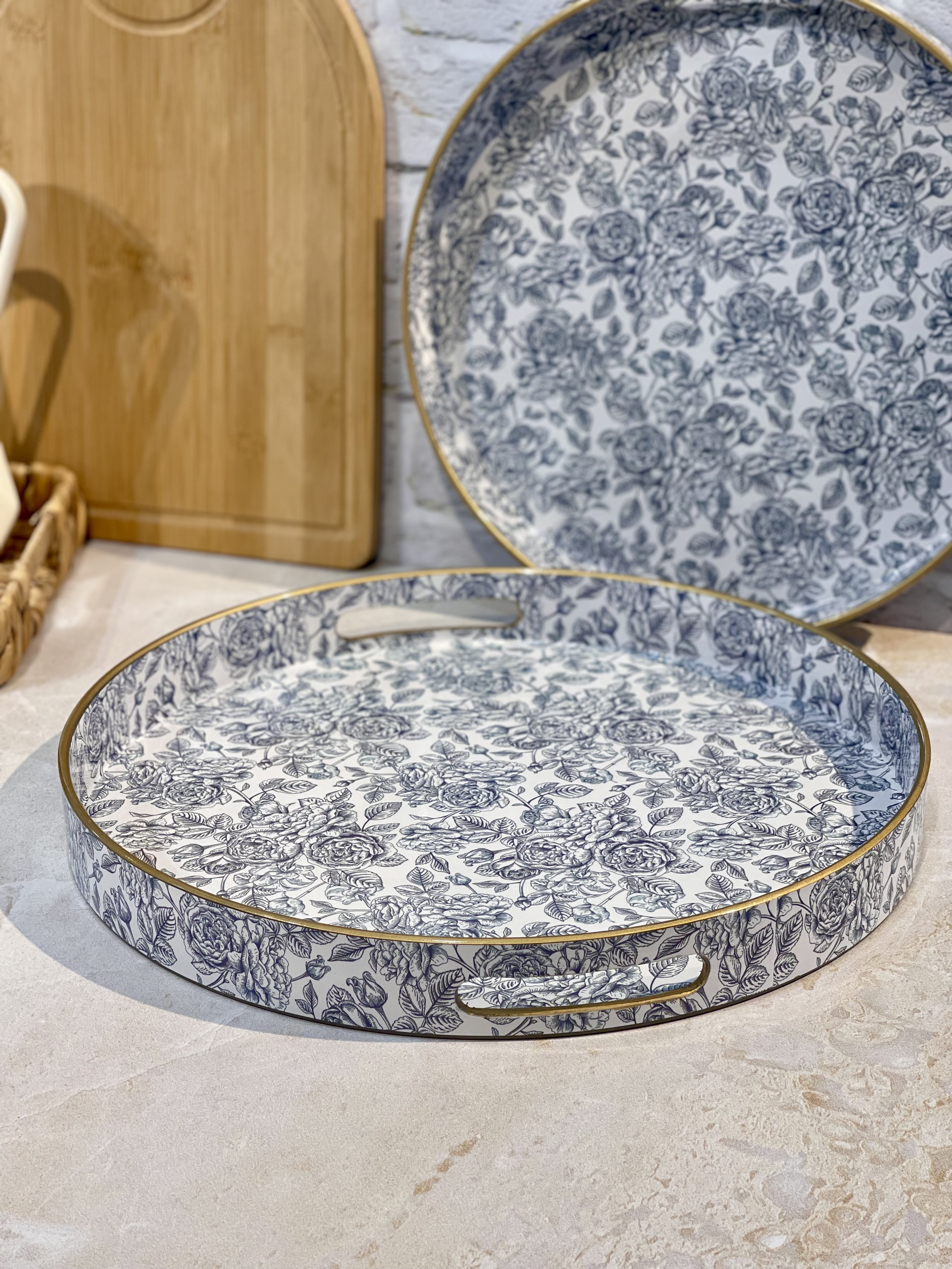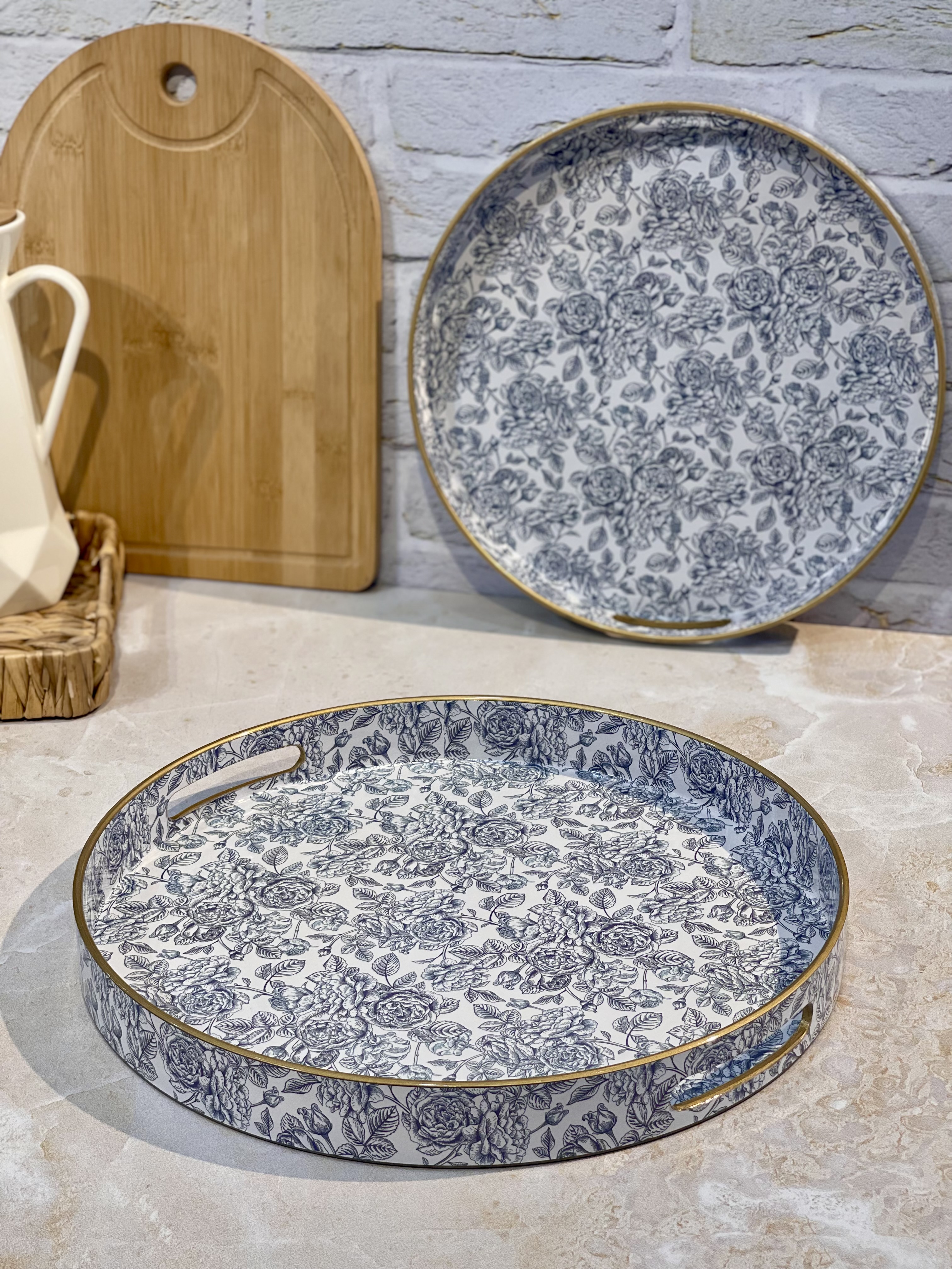 شارژ چندمین بار پر فروش ترین سینی پذیرایی و سرو جفتی Blue spring محصول وارداتی جنس:اکرولیک ضخیم رنگ ثابت و بدون تغییر رنگ✅️ در دو قطر 32.5 و 37.5 سانتیمتر قیمت جفتی