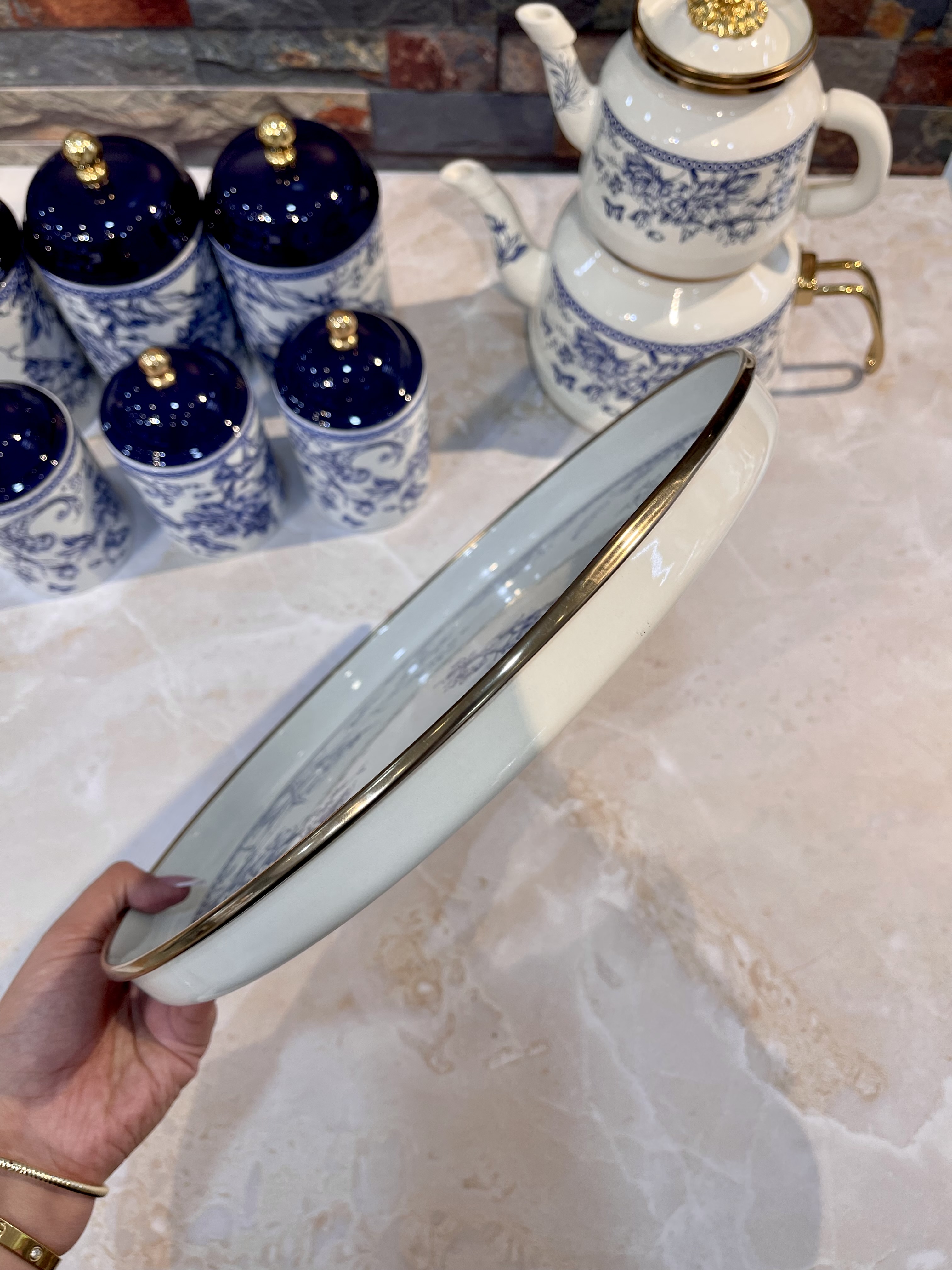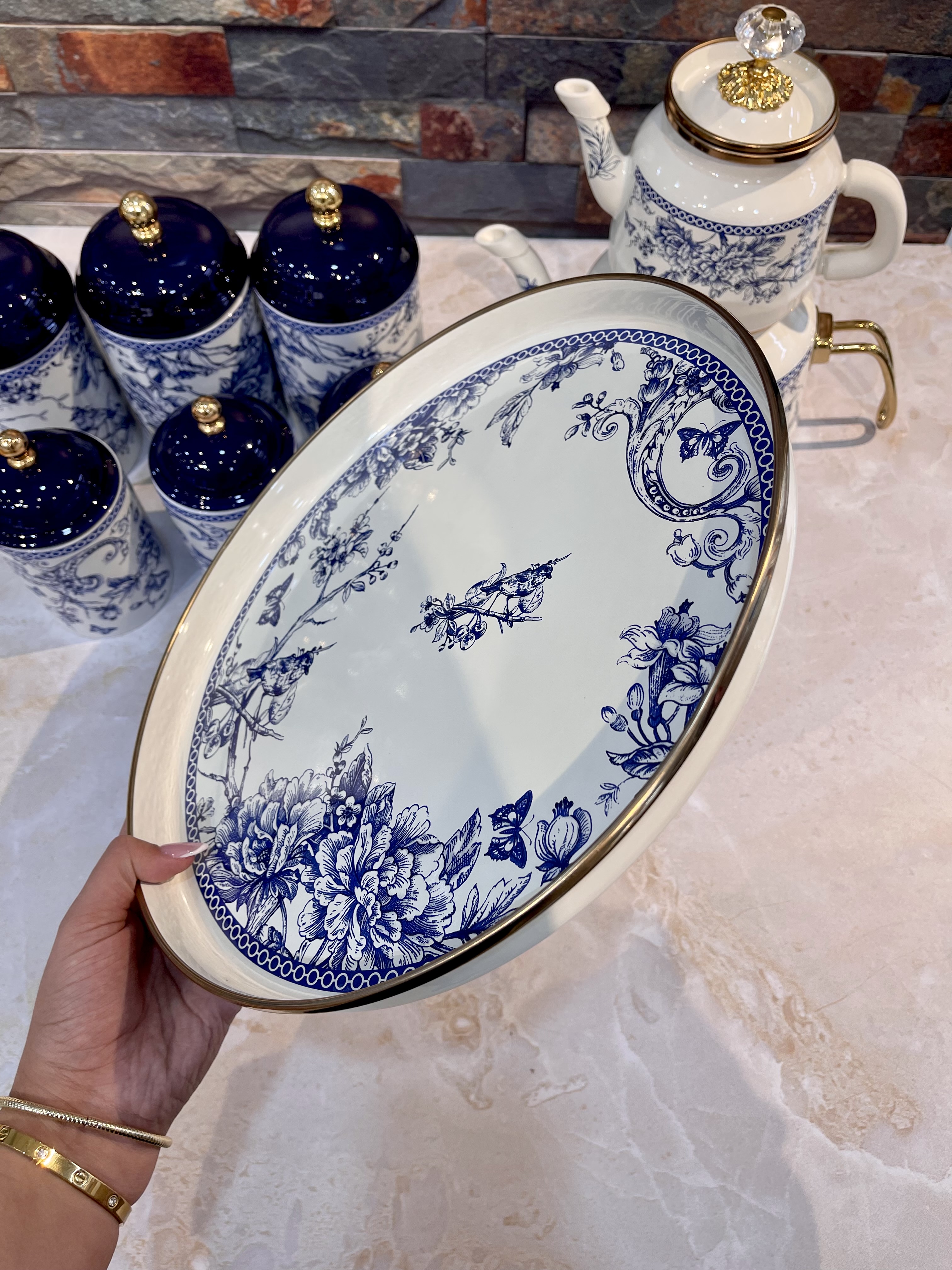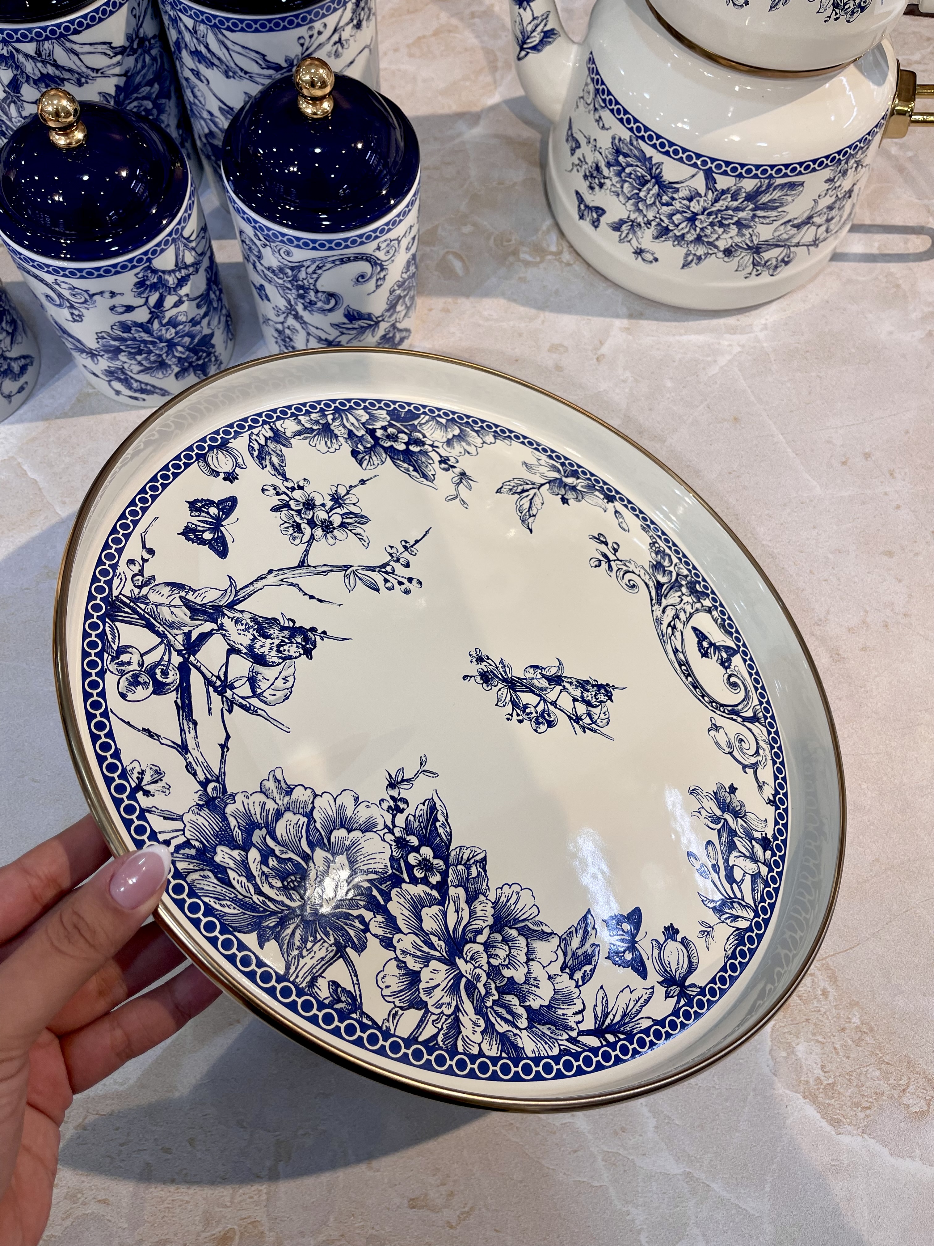 سینی لعابی گرد میس بتی طرح کل آبی blue spring برند miss betty