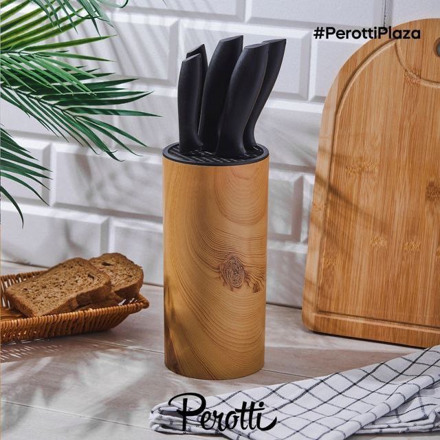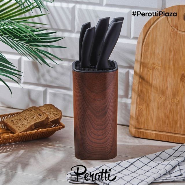 ست چاقو شش پارچه colte محصول Perotti ترکیه جنس تیغه فولادی ضد زنگ جنس استند سیلیکونی اقلام شامل پنج سایز چاقو آشپزی یک عدد استند در دو مدل گرد و چهارگوش